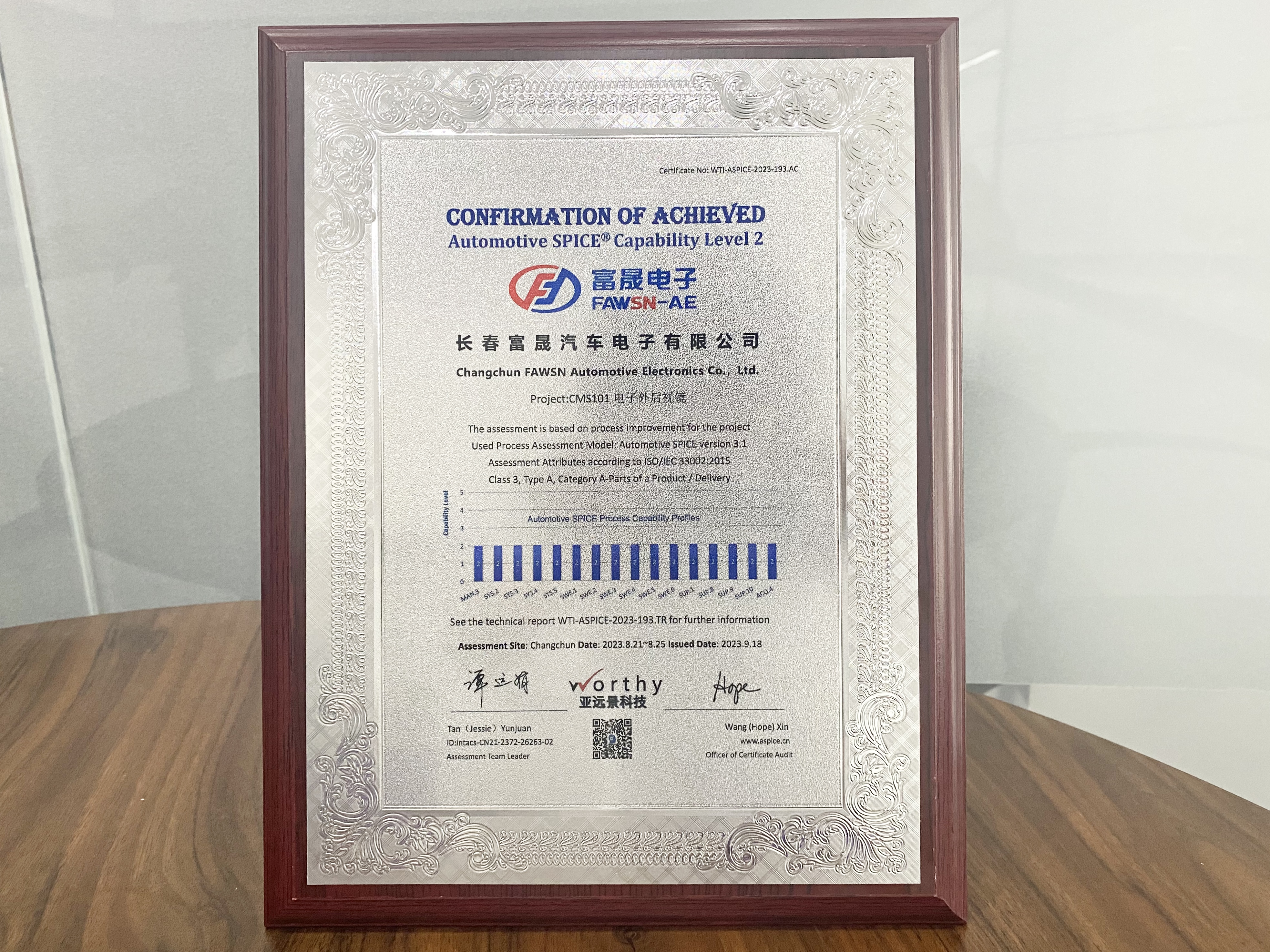 新能源事業部富晟電子公司成功通過ASPICE L2國際認證